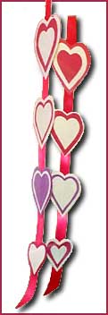 3. Glue the hearts on both sides of the string or ribbon.